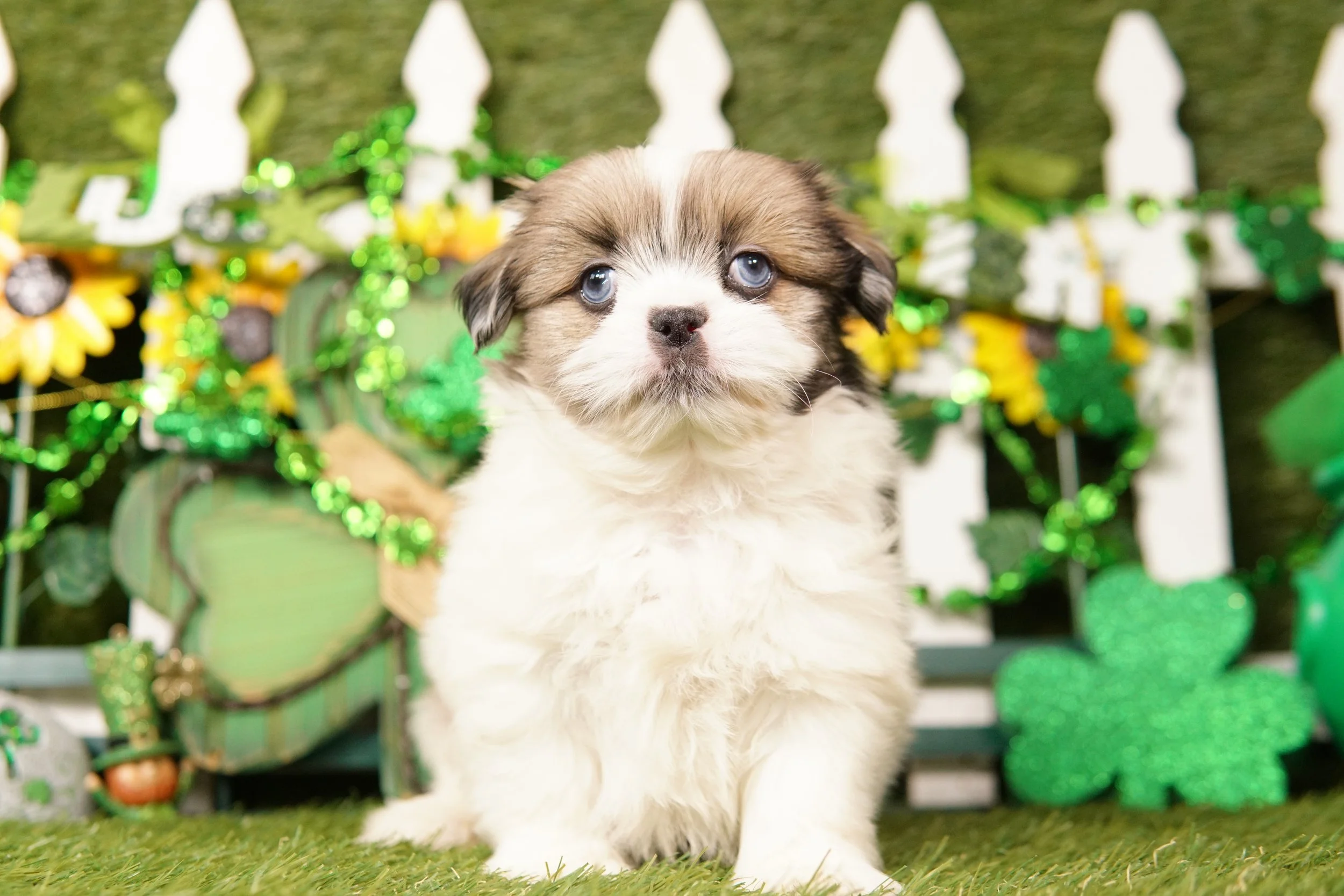 Mom is a 12 lb Shih Tzu and Dad is a 15 lb Peke/Pom. These are not considered hypoallergenic. They will come to you with all age appropriate shots and wormings done and will be checked by our vet to ensure good health. Please feel free to call during normal business hours or text anytime at (641-590-1106)